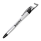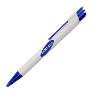 Bolígrafo plástico retráctil, cuerpo blanco y clip-botón de color. TINTA NEGRA.