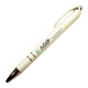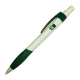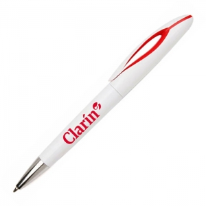Bolígrafo plástico apertura giratoria, cuerpo plateado y detalles de color. Ranura apoya celular. TINTA NEGRA.