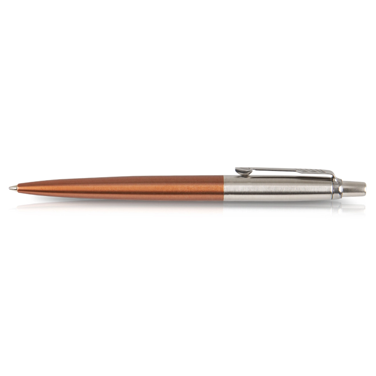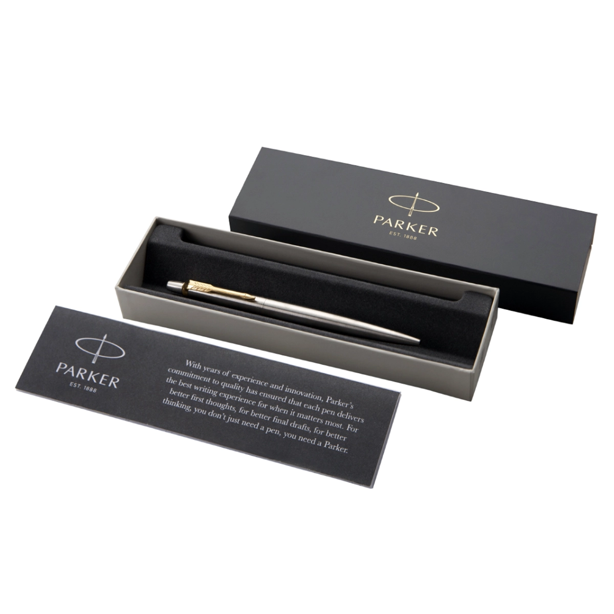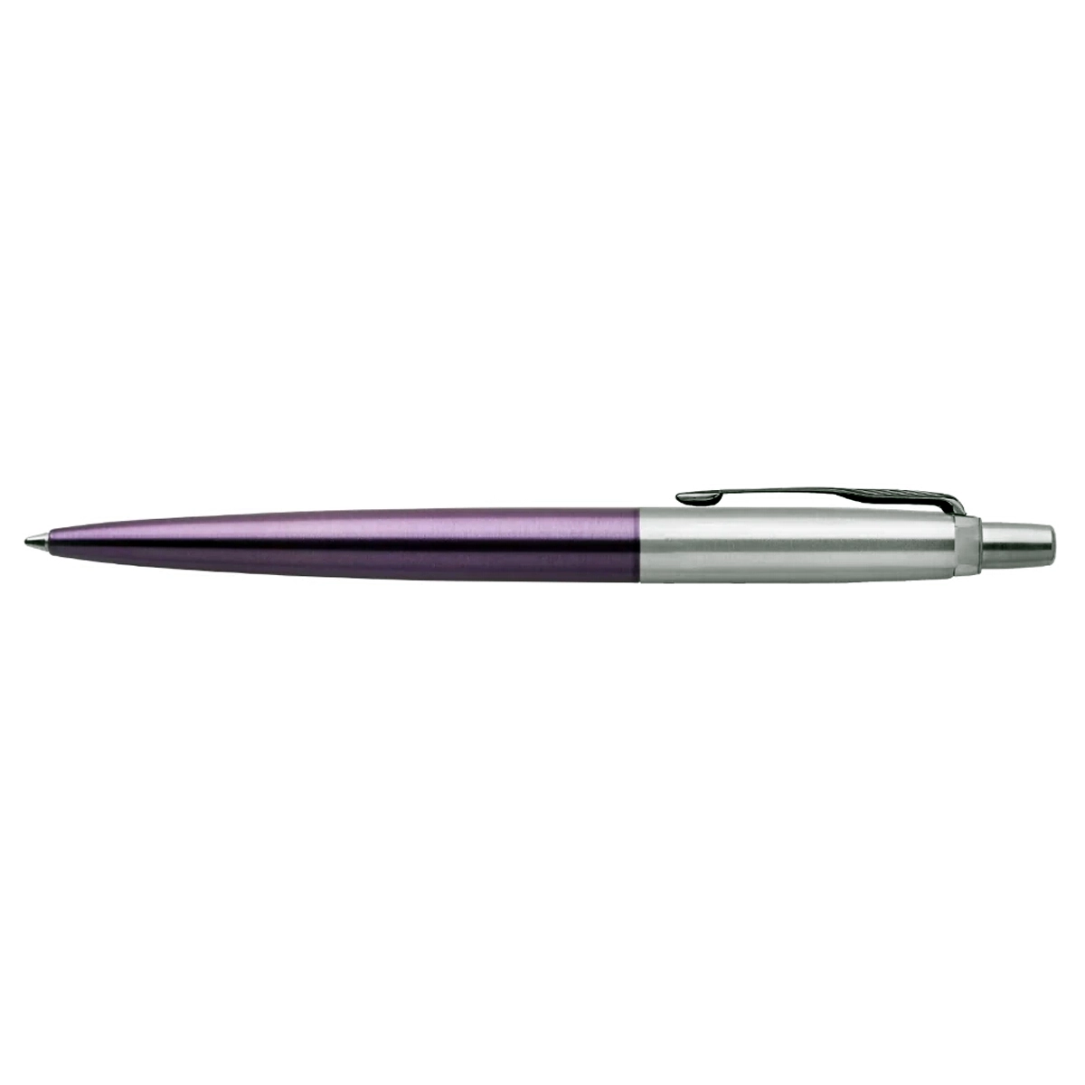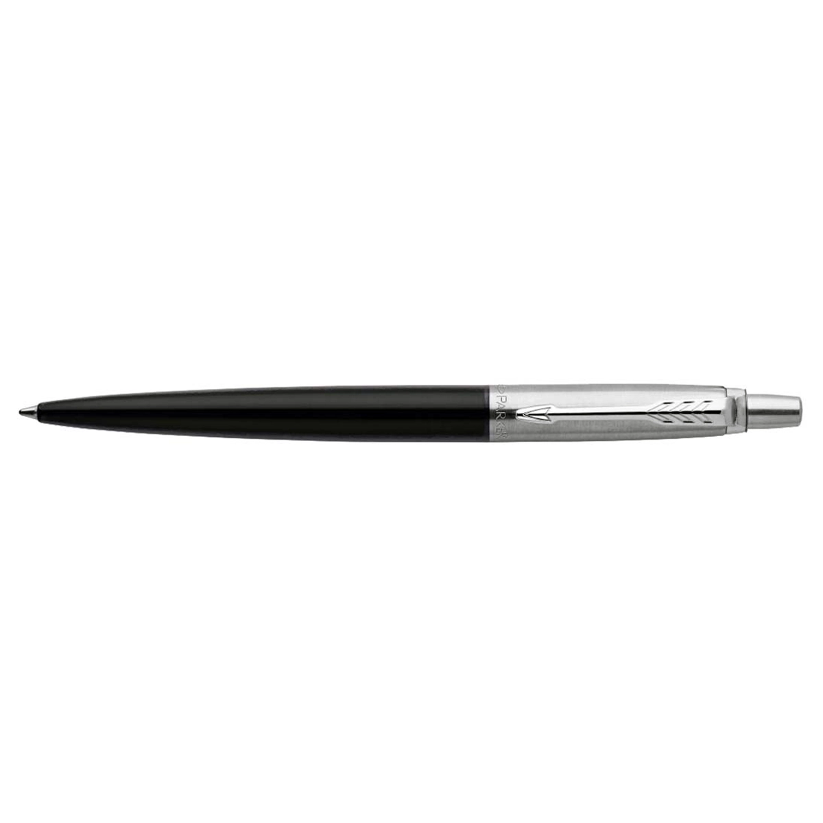 Bolígrafo PARKER retráctil. Cuerpo de acero inoxidable cromado con punta media. TINTA AZUL. Medida: 14 cm. aprox. Presentación: estuche de cartón.