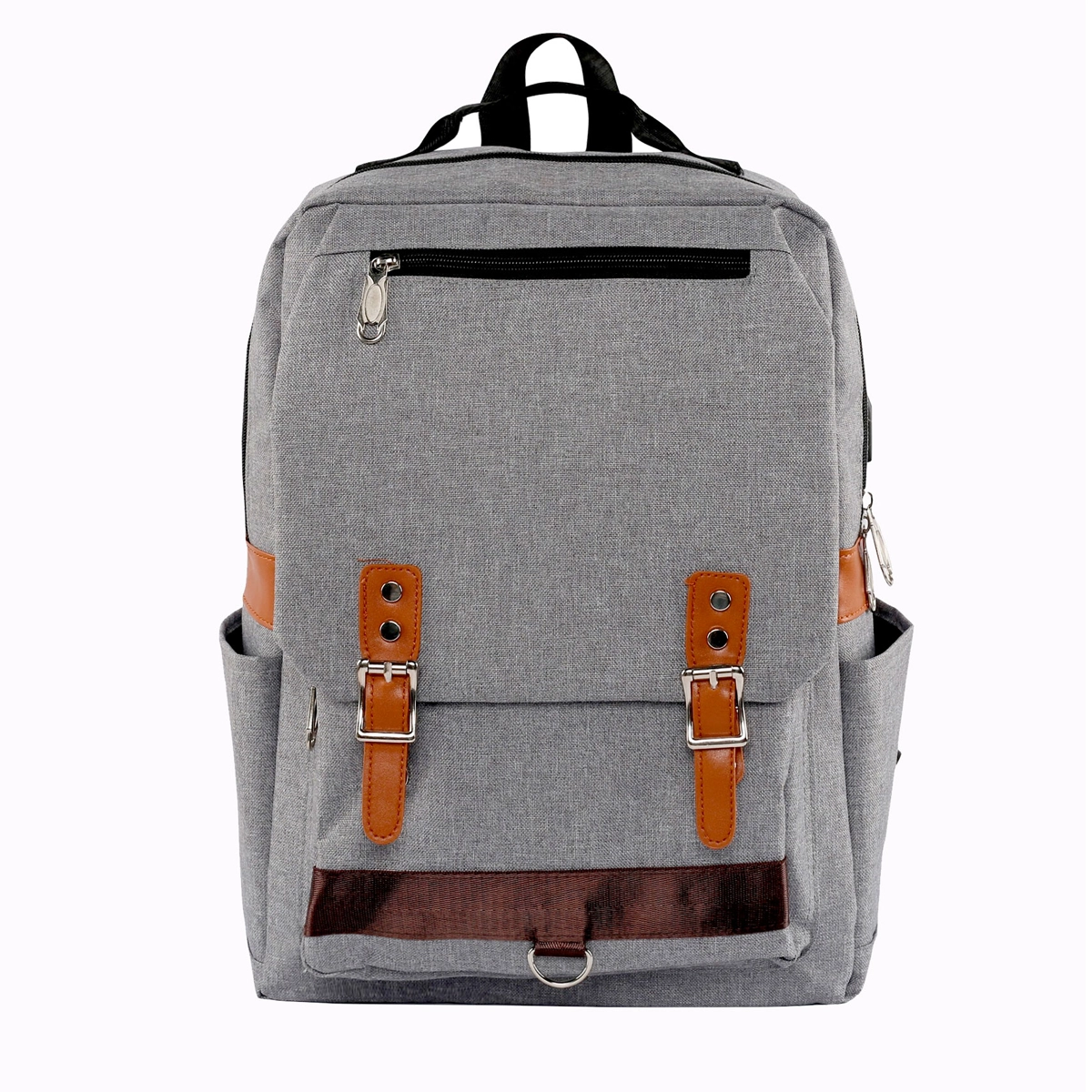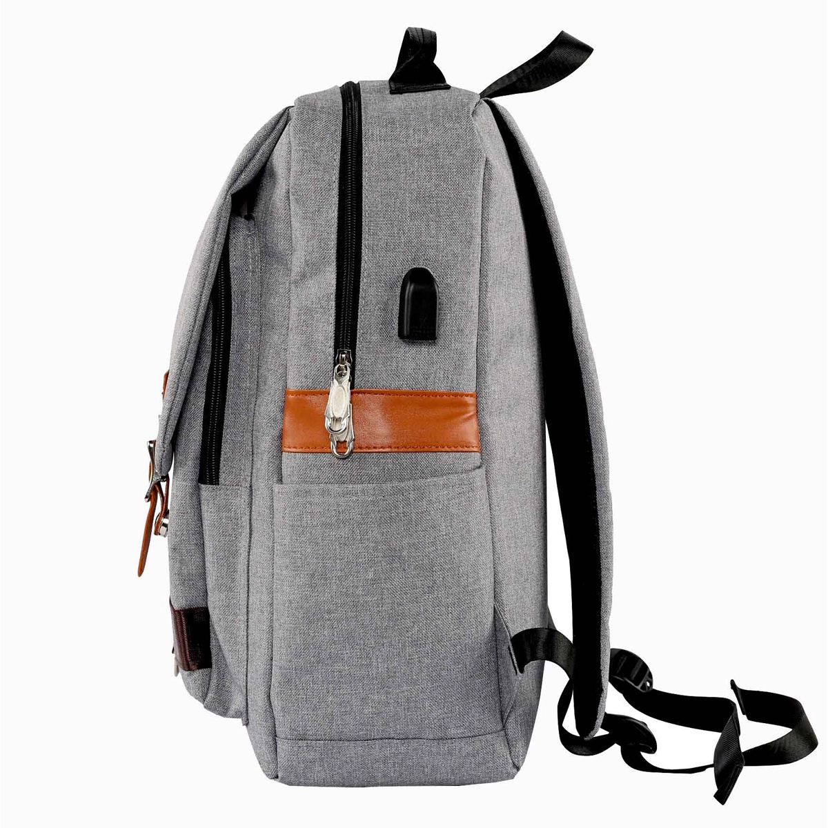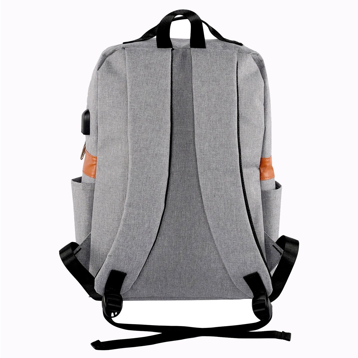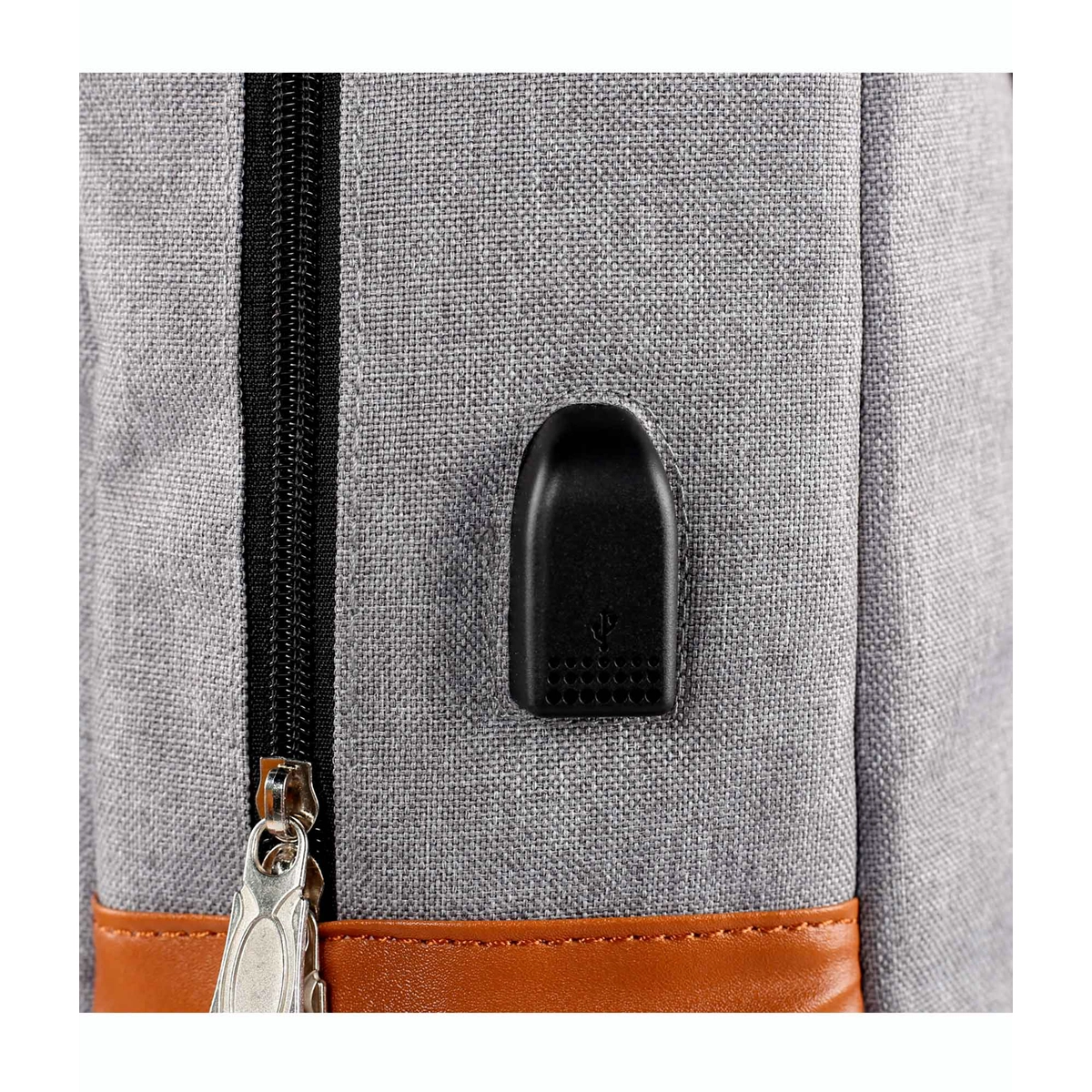 Mochila urbana confeccionada con tela algodón y Nylon. Porta notebook 15,6´. Compartimiento principal con doble cierre perimetral. Segundo compartimiento con cierre perimetral. Solapa bolsillo con cierre y aplique diseño hebilla imantada. 1 par de bolsillos laterales. Interior con 2 bolsillos organizadores. Conexión USB. Detalles laterales de eco cuero marrón. Capacidad: 24 litros. Medidas: 45 x 30 x 15 cm.