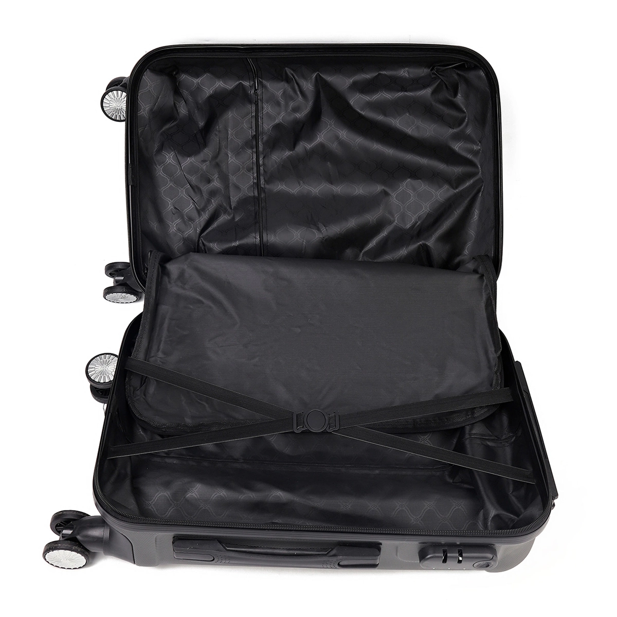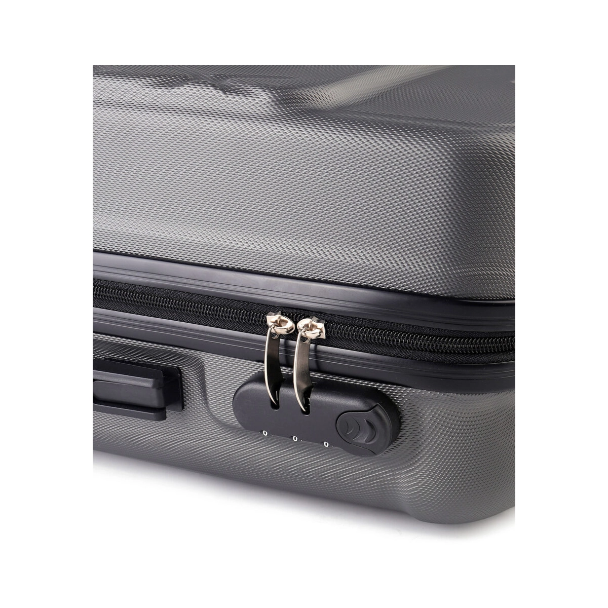 Maleta de cabina Carry-On. Capacidad: 40 Litros. Cuenta con un candado cifrado para mayor seguridad a tus pertenencias. Material 100% ABS. Ruedas Giratorias 360° Compartimentos internos con cierre y elástico de sujeción para la ropa. Cierre cremallera doble, 2 manijas de traslado con detalle engomado para que su agarre sea más confortable. Posee 4 tacos de apoyo laterales para cuidar del contacto con el suelo. Asa de traslado telescópica de 2 posiciones. Medidas: 55 x 34 x 22 cm.