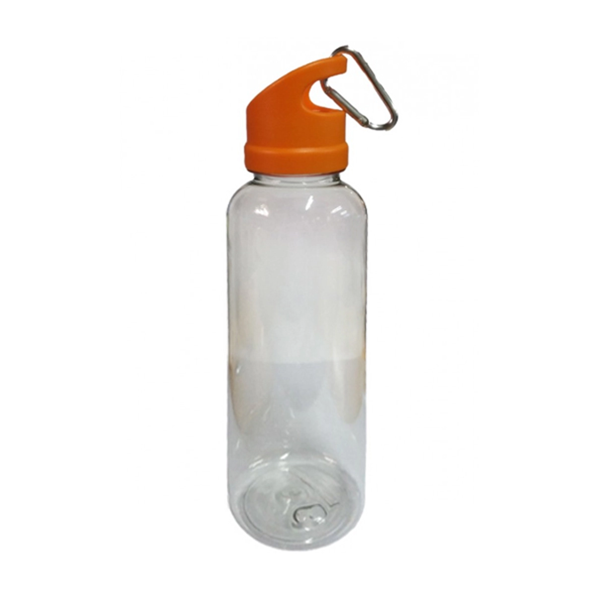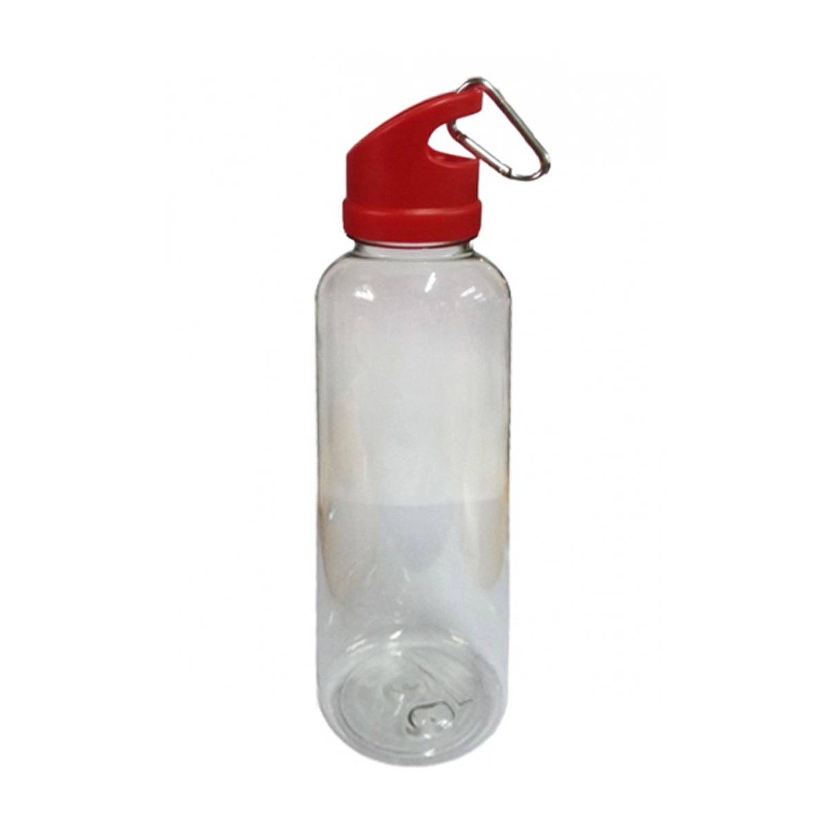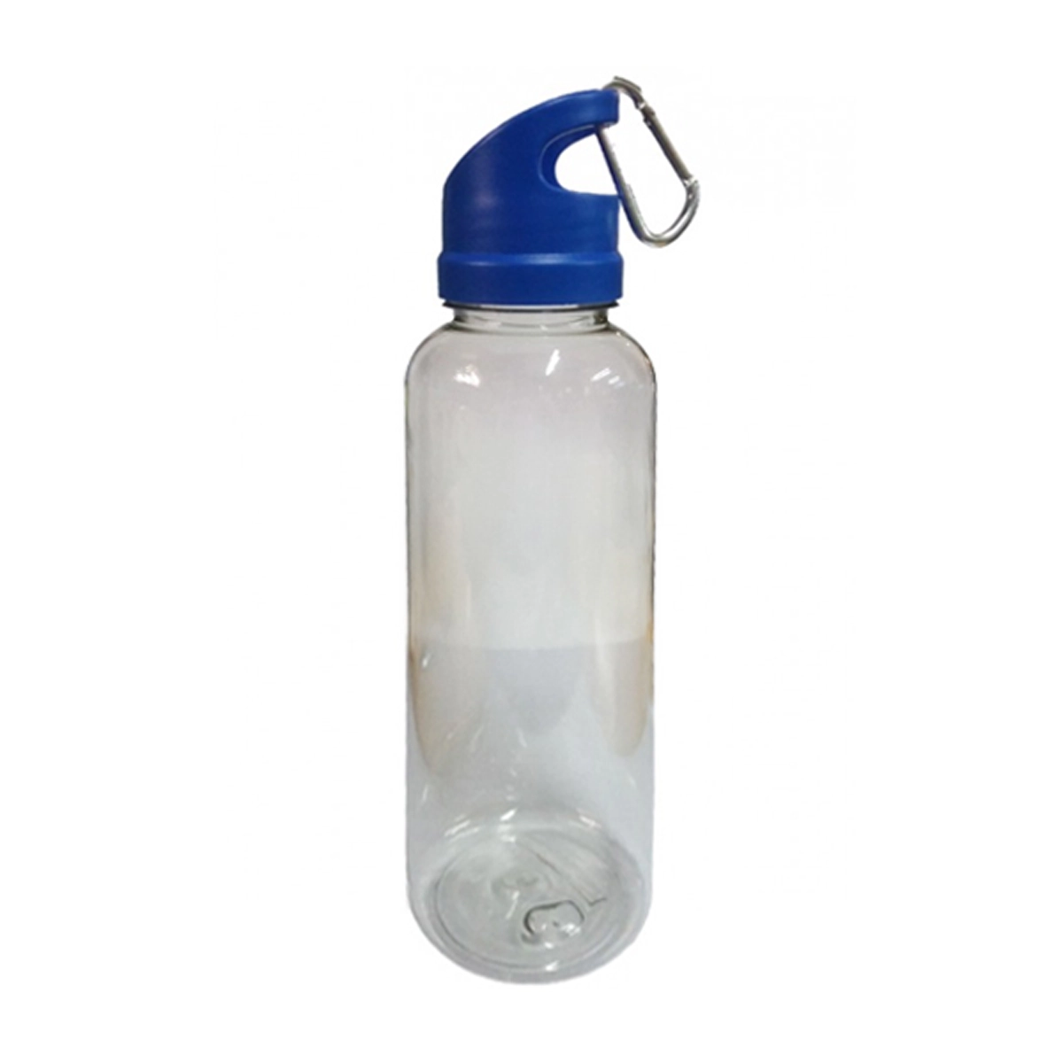 Botella recta deportiva. Tapa con agarre de transporte y mosquetón de metal. Material PET. Capacidad: 750 ml. Medida: 25 cm. de altura. NO APTA PARA LÍQUIDOS CALIENTES.