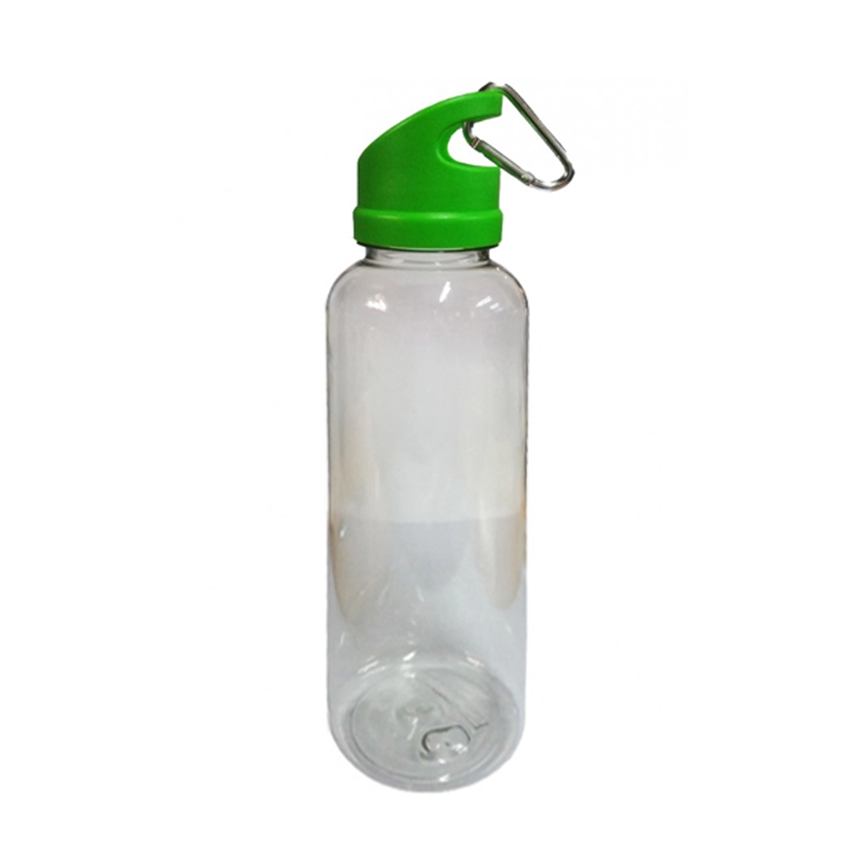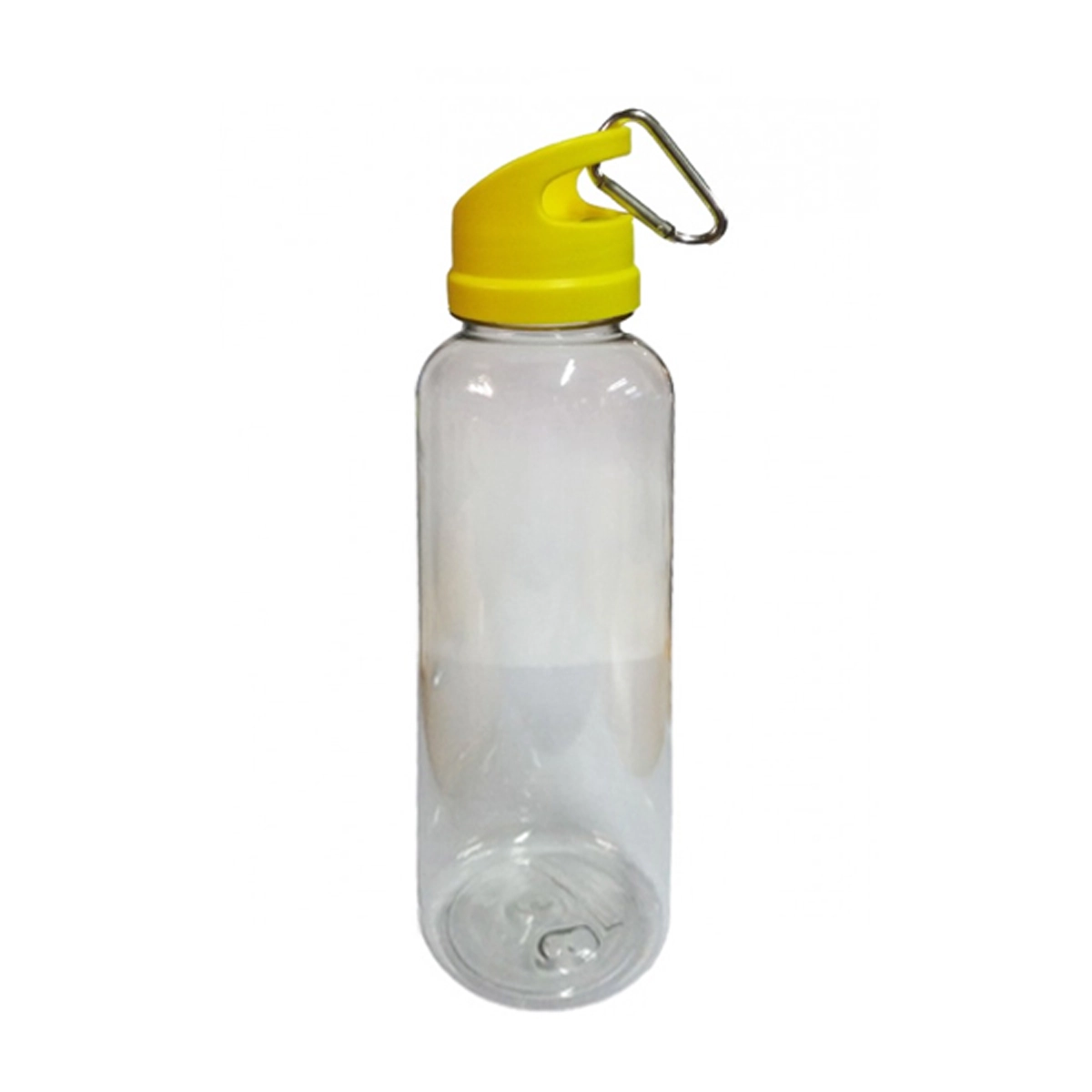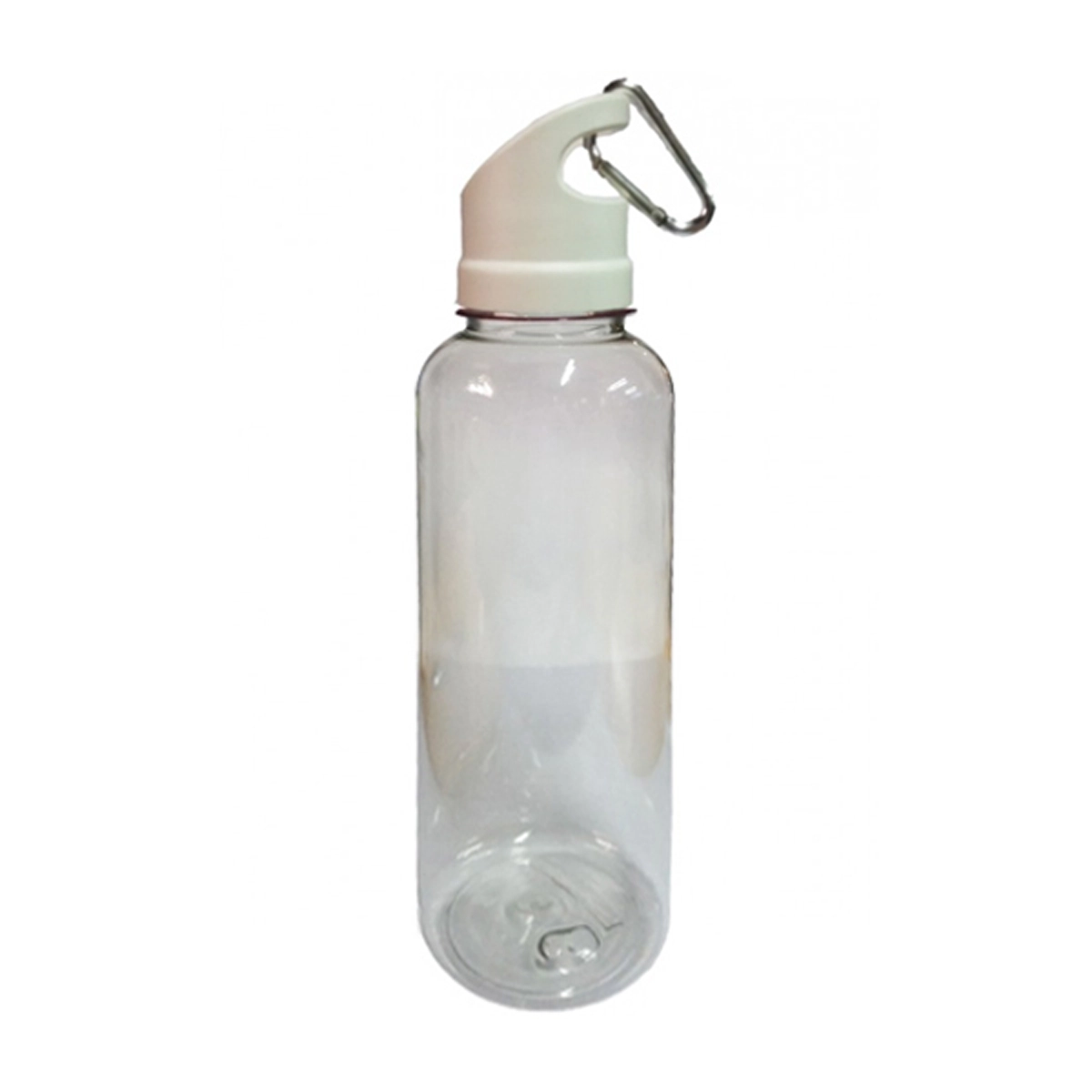 Botella recta deportiva. Tapa con agarre de transporte y mosquetón de metal. Material PET. Capacidad: 750 ml. Medida: 25 cm. de altura. NO APTA PARA LÍQUIDOS CALIENTES.